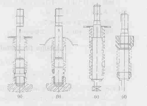 (b) 結(jié)構(gòu)用于截止閥, 波紋補償器通過下部接頭與閥桿連接, 上部通過碗形罩與閥蓋連接, 此結(jié)構(gòu)閥門的總高度比圖 1 (a) 結(jié)構(gòu)要低。圖 1 (c) 結(jié)構(gòu)用于閘閥, 閘閥的行程較截止閥長, 波紋補償器長度比截止閥長很多, 單只波紋補償器長度不要超過 400 mm , 如果太長易引起波紋補償器失穩(wěn), 導(dǎo)致波紋補償器損壞。解決此問題一般采用波紋補償器分段, 中間加連接接頭, 保證波紋補償器的 使用。圖 1 (d) 結(jié)構(gòu)可用于波紋補償器閘閥或截止閥, 波紋補償器通過下部接頭與閥桿連接, 上部通過接頭與閥蓋焊接, 此種結(jié)構(gòu)可解決上部法蘭連接墊片密封潛在泄漏的問題, 但不易拆卸。4 種結(jié)構(gòu)各有 點, 設(shè)計時應(yīng)根據(jù)實際情況選用。