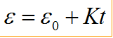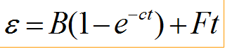 ………(2)第二階段為線性關系,上兩式中的A、B、C、F均為實驗待定常數,ε為應變,t為時間。