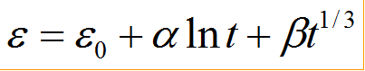 也有人把蠕變 階段看成是較低溫度下起主導作用的α蠕變和較高溫度的以β蠕變為主的蠕變的總和,合并式(3)和式(4)可得表示蠕變曲線 階段的通式: