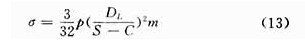 式中:DS為法蘭環(huán)封水跨距,mm;α為系數(shù),當(dāng)泊桑比μ=0.3時(shí):α=1+1.3ln(DL/DS)-0.175(DS/DL)2